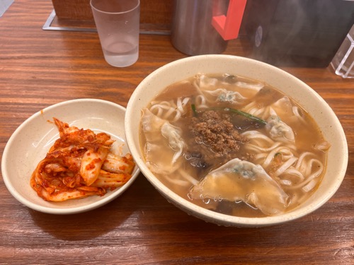따끈한 국물과 쫄깃한 면발 마늘가득 김치