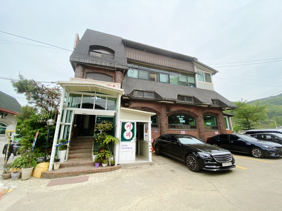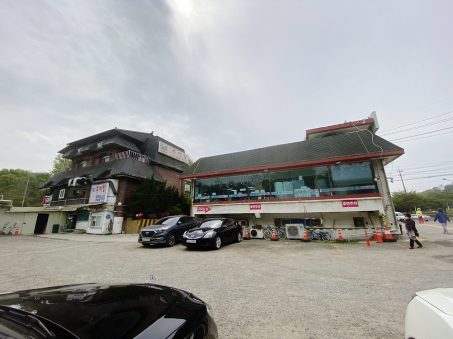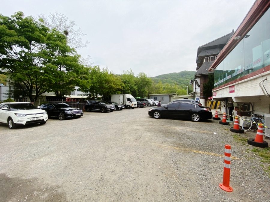 건물 2개 사이 앞뒤 옆으로 넓은 주차장