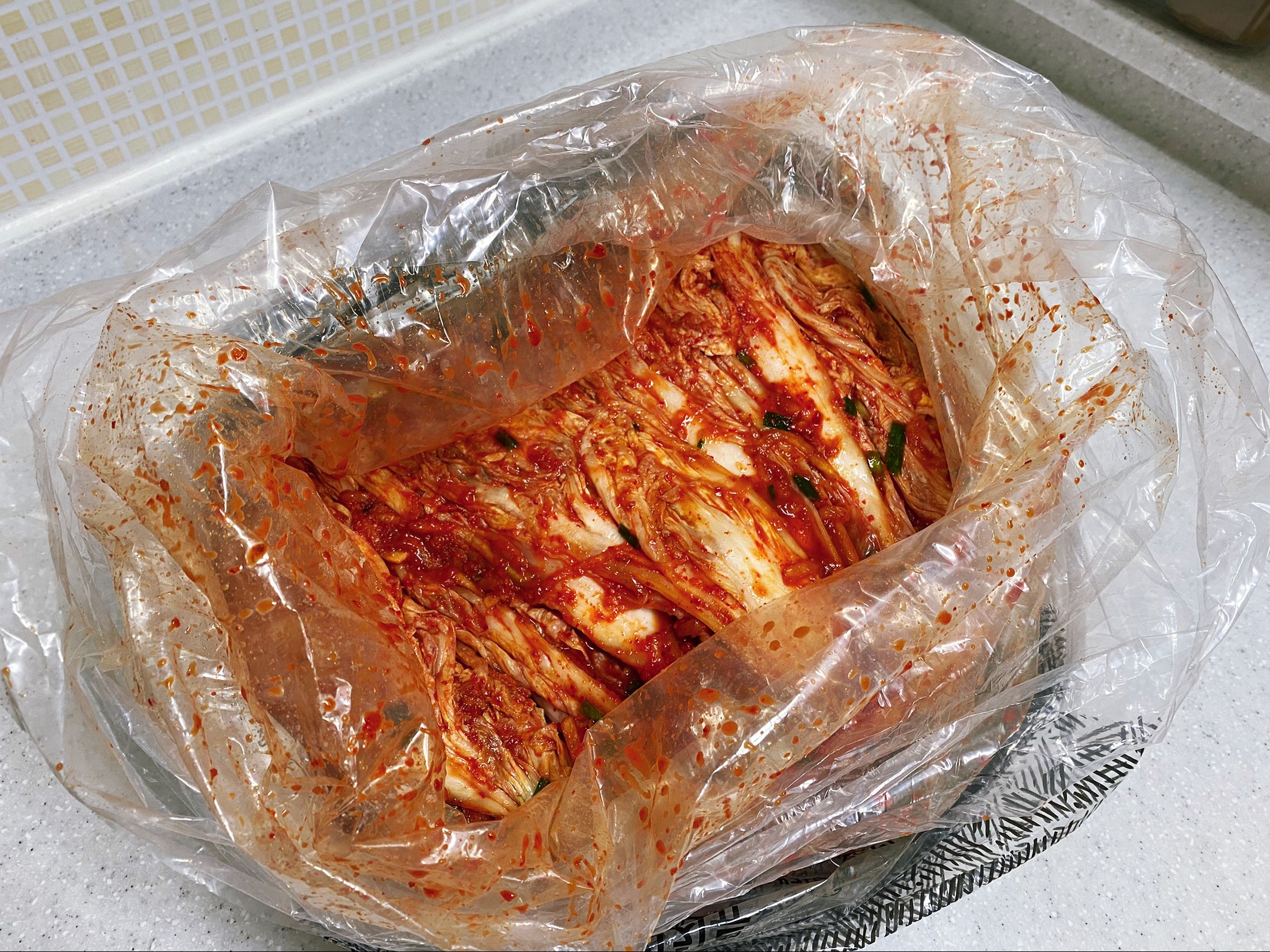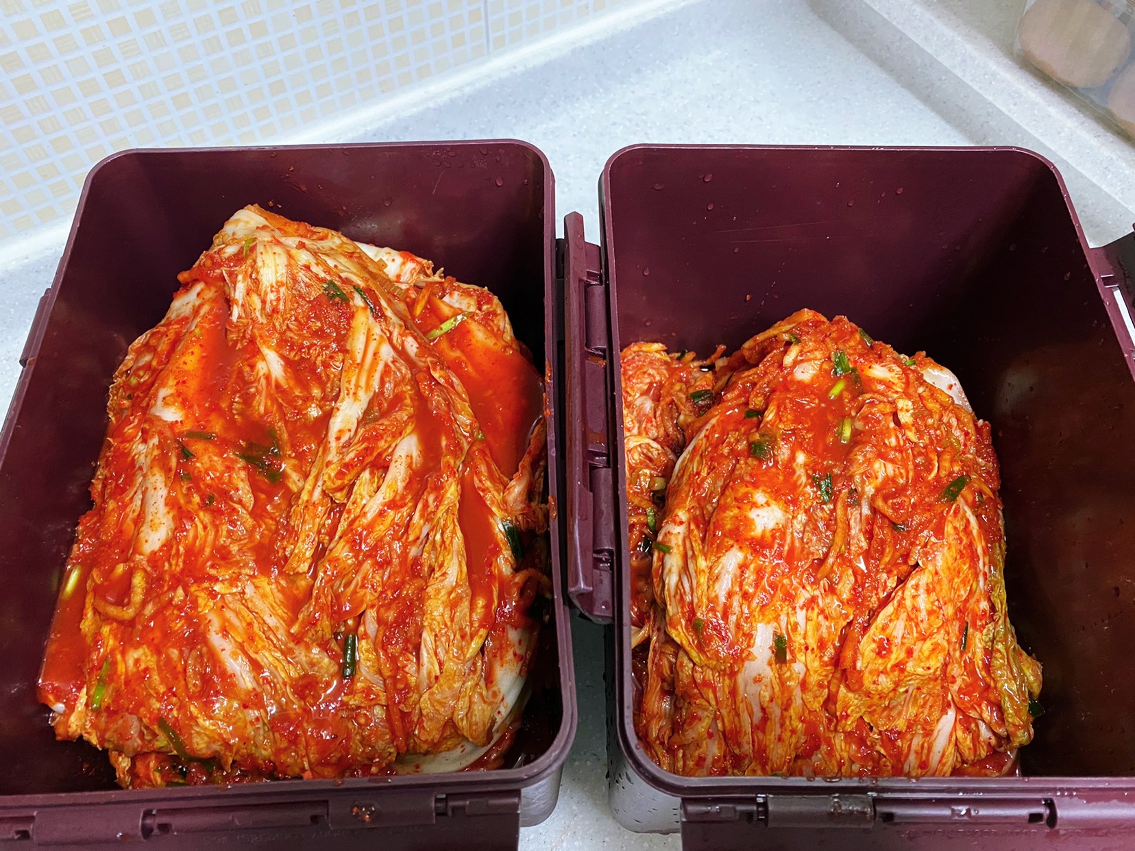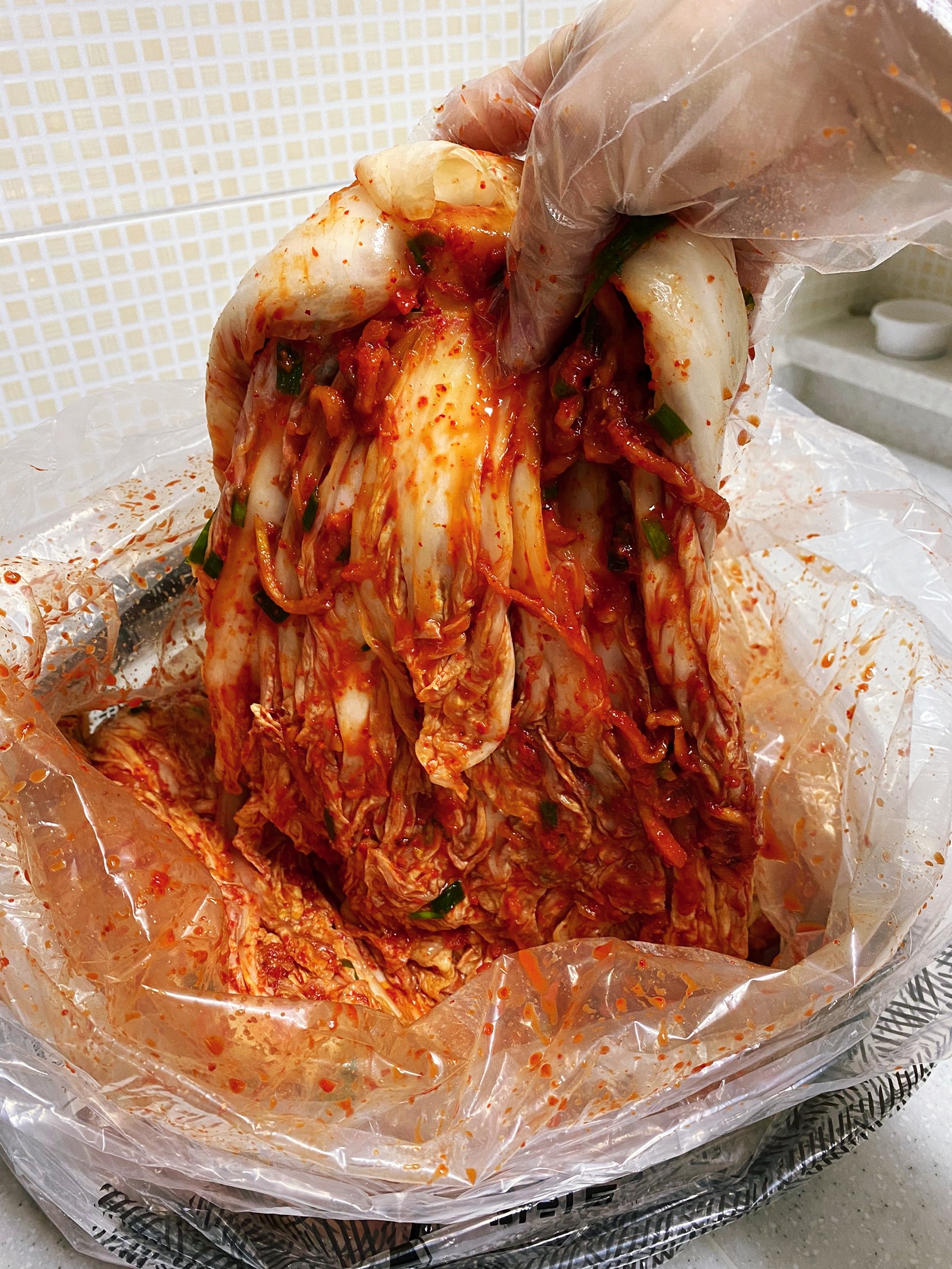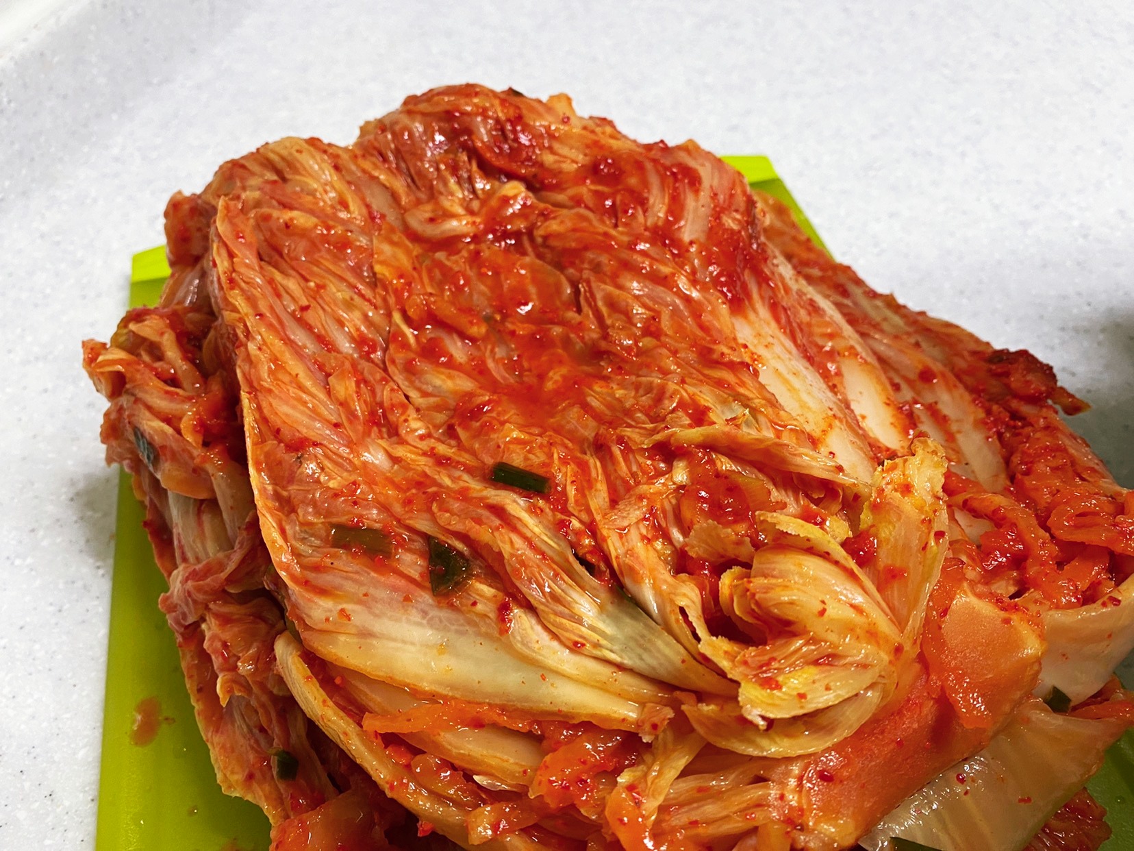 김치통에 옮겨 담기 전 맛보기